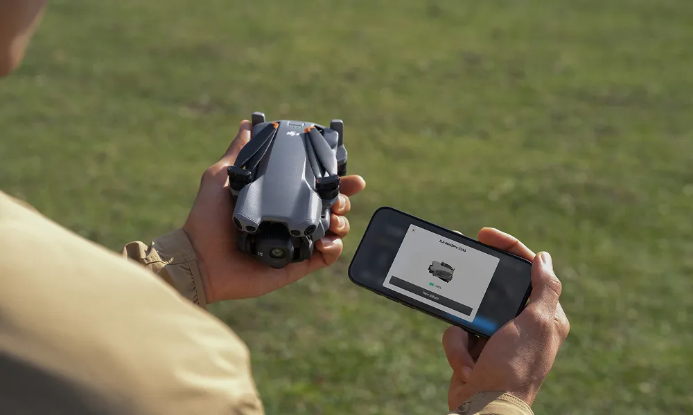 Mini 5 Pro stöder fjärruppvakning via DJI Fly-appen inom Bluetooth-räckvidd. Utan att ta ut drönaren eller fjärrkontrollen kan filer överföras med upp till 100 MB/s via Wi-Fi 6. Även när du växlar till andra appar fortsätter DJI Fly-appen att ladda ner i bakgrunden.