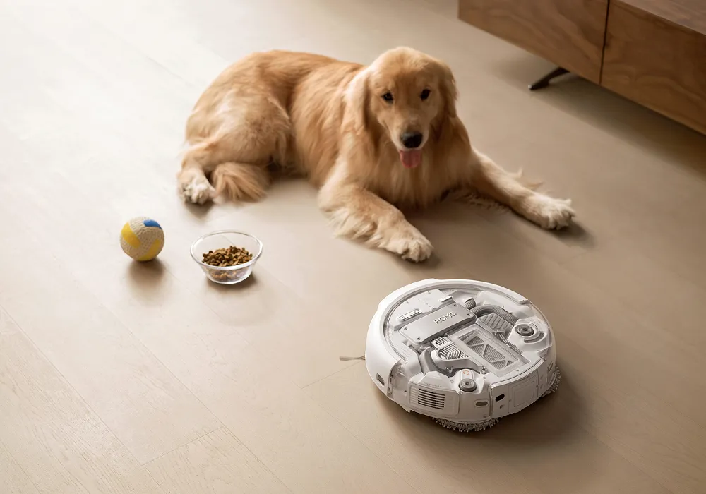 I husdjursområden minskar ROMO A och ROMO S deras kör- och sidoborsthastighet för att undvika att sprida skräp, samtidigt som de ökar sugkraften för att noggrant rengöra husdjurspäls. De känner också igen och undviker "lämningar" för att förhindra oavsiktligt oreda.